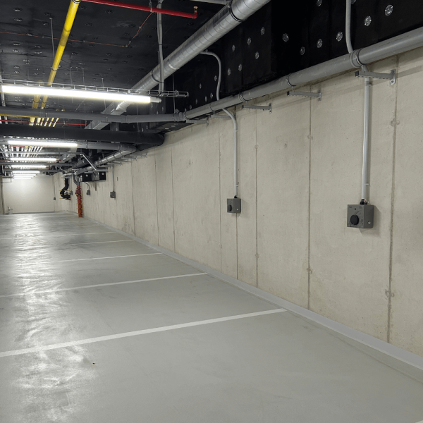 V rámci výstavby parkovacích míst v podzemní garáži bytového domu byly vybrané parkovací stání osazeny AC nabíjecí stanicí pro elektromobily. Každá stanice je dostupná pouze oprávněným uživatelům pomocí autorizačního RFID čipu, čímž je zajištěna kontrola přístupu a bezpečný provoz.